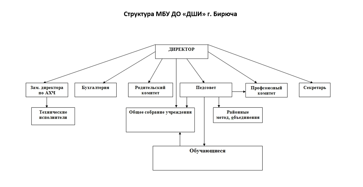 Непосредственное руководство и управление МБУ ДО «ДШИ» г.Бирюча осуществляет директор, прошедший соответствующую аттестацию.
